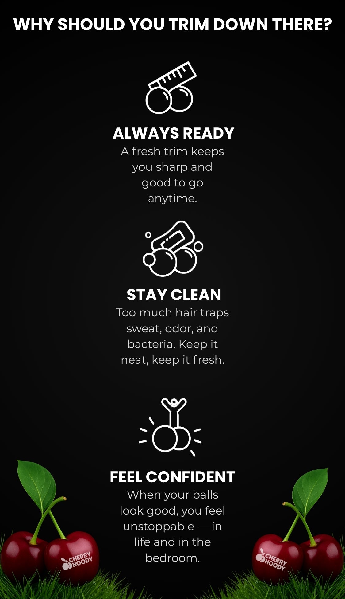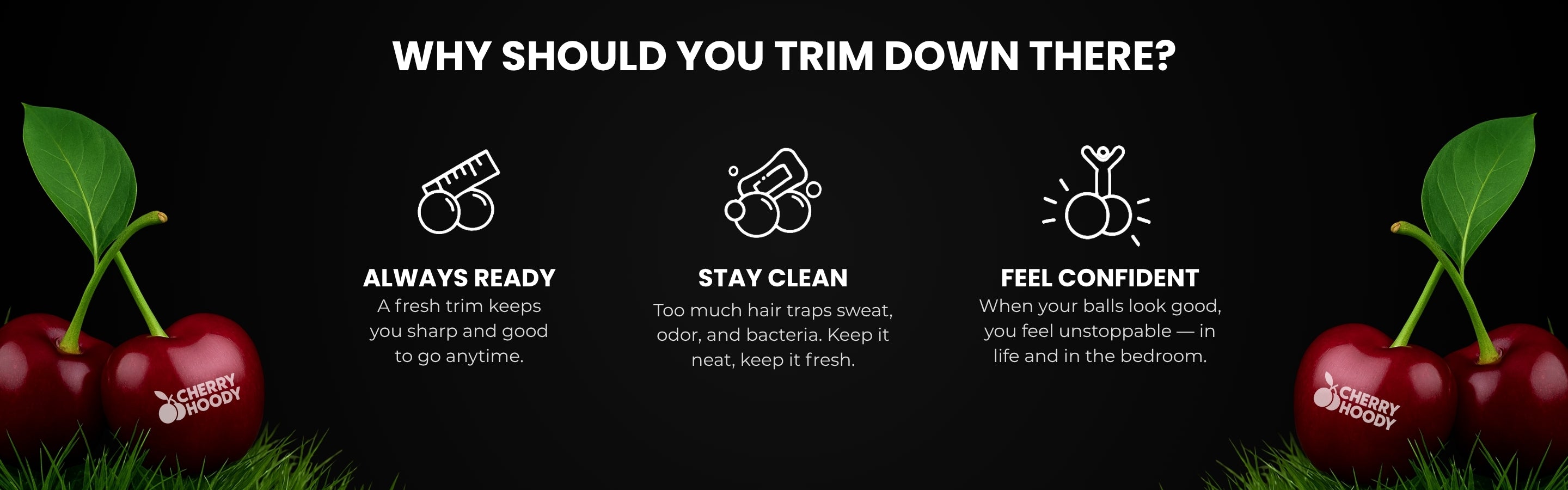 A steady grip is essential for a precise trim — especially down there. CherryTrim™ features an ergonomic design that fits perfectly in your hand, giving you total control. Whether it’s front, back, or around every curve, it moves with you to ensure maximum efficiency.